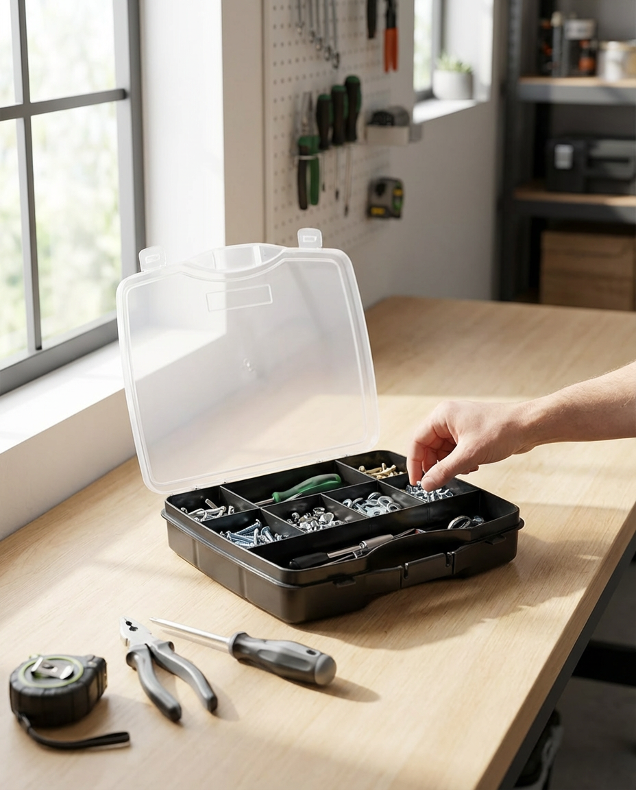 • Organizacija: Postavite alate u odgovarajuće pregrade unutar kutije.